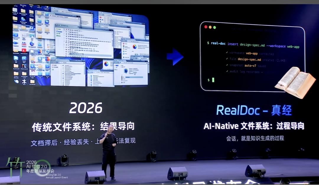 于是,钉钉推出全新的RealDoc真经系统,这是一个专门为AI设计、以“过程保存”为中心的文件系统,以及Dingtalk CLI,一套让AI能像人一样(甚至比人更高效)操作系统的能力指令集。